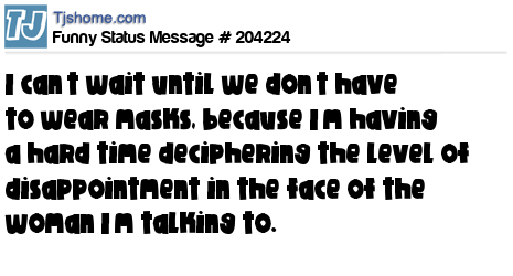 X says I can’t wait until we don’t have to wear masks, because I’m having a hard time deciphering the level of disappointment in the face of the woman I’m talking to.
