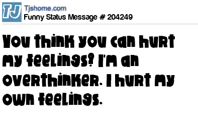 X says You think you can hurt my feelings? I'm an overthinker. I hurt my own feelings.