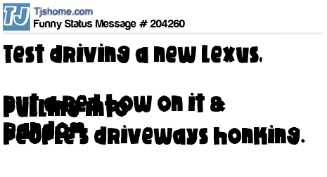- # 173097 At Christmas time it's fun to take a new Lexus for a test drive, put a big red bow on it & pull into random people's driveways honking the horn.