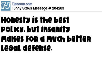 - # 182780 Honesty is the best policy, but insanity makes for a better legal defense.