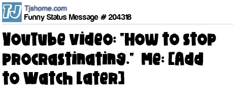 X says YouTube video: "How to stop procrastinating." Me: [Add to Watch Later]