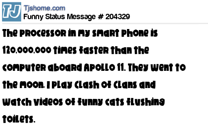 - # 182213 My Smart Phone has more computing power than NASA did in 1969 and they went to the moon. All I do is play Pokemon. Yes, I'm an underachiever.