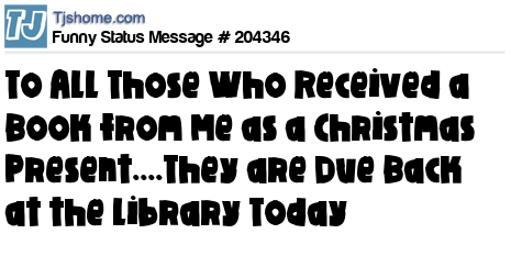 X says To All Those Who Received a Book from Me as a Christmas Present....They are Due Back at the Library Today