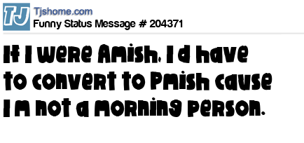 X says If I were Amish, I’d have to convert to Pmish cause I’m not a morning person.