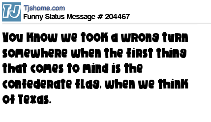 X is You know we took a wrong turn somewhere when the first thing that comes to mind is the confederate flag, when we think of Texas.