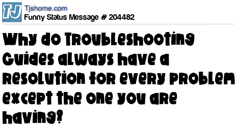 X says Why do Troubleshooting Guides always have a resolution for every problem except the one you are having?