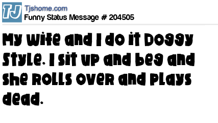 - # 18315 My wife and I have sex DOGGY STYLE..... I sit up and beg, she rolls over and plays dead!
