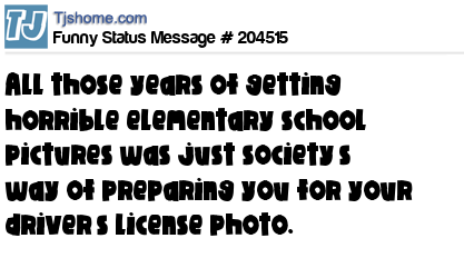 X says All those years of getting horrible elementary school pictures was just society’s way of preparing you for your driver’s license photo.