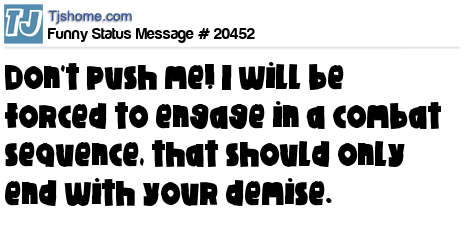 X says Don't push me! I will be forced to engage in a combat sequence, that should only end with your demise.