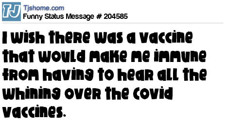 X says I wish there was a vaccine that would make me immune from having to hear all the whining over the Covid vaccines.