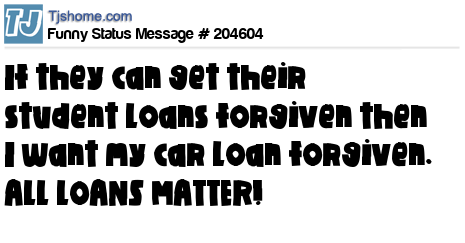 - # 201968 If they can get their student loans forgiven, then I want my car loan forgiven. ALL LOANS MATTER