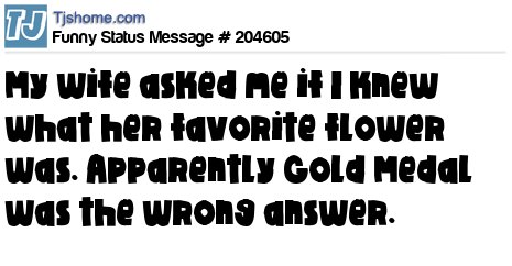 X says My wife asked me if I knew what her favorite flower was. Apparently Gold Medal was the wrong answer.