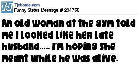 X says An old woman at the gym told me I looked like her late husband..... I'm hoping She meant while he was alive.