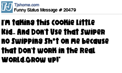 X is I'm taking this Cookie little Kid.. And Don't Use that Swiper no Swipping Sh*t on me because that Don't work in the Real World.Grow up!"