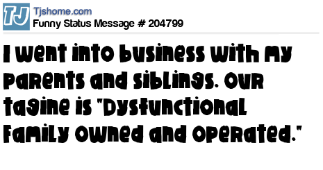 X says I went into business with my parents and siblings. Our tagine is "Dysfunctional Family Owned and Operated."