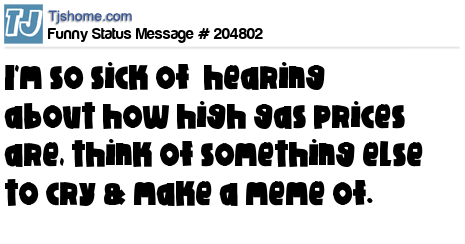 X says I'm so sick of hearing about how high gas prices are, think of something else to cry & make a meme of.