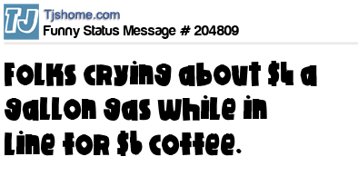 X says Folks crying about $4 a gallon gas while in line for $6 coffee.