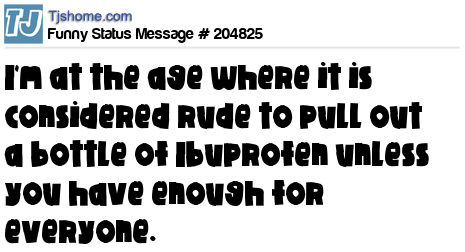 X says I'm at the age where it is considered rude to pull out a bottle of Ibuprofen unless you have enough for everyone.