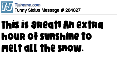 X says This is great! An extra hour of sunshine to melt all the snow.