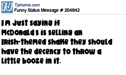 X says I’m just saying if McDonald’s is selling an Irish-themed shake they should have the decency to throw a little booze in it.