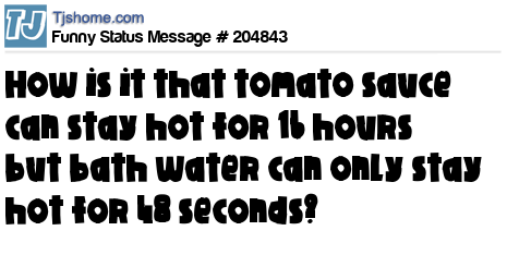 X says How is it that tomato sauce can stay hot for 16 hours but bath water can only stay hot for 48 seconds?
