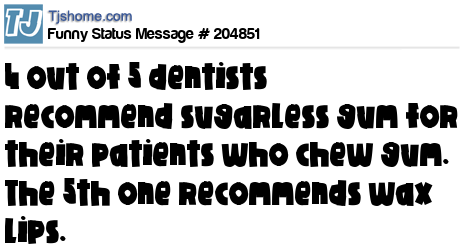 X says 4 out of 5 dentists recommend sugarless gum for their patients who chew gum. The 5th one recommends wax lips.