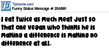 X says I eat twice as much meat just so that one vegan who thinks he is making a difference is making no difference at all.