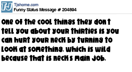 X says One of the cool things they don’t tell you about your thirties is you can hurt your neck by turning to look at something, which is wild because that is neck’s main job.
