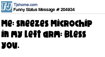 - # 202397 Me: (Sneezes) Microchip in my left arm: Bless you