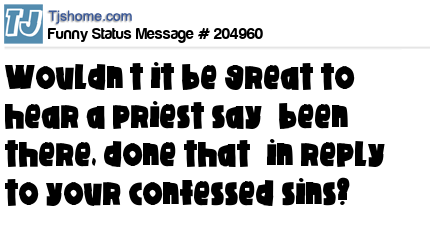 X says Wouldn’t it be great to hear a priest say “been there, done that” in reply to your confessed sins?