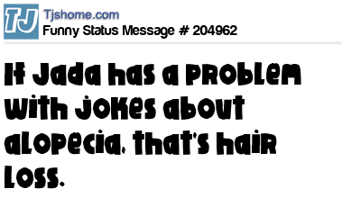 - # 204950 If Jada Smith can't take a joke over Alopecia then that's hair loss.