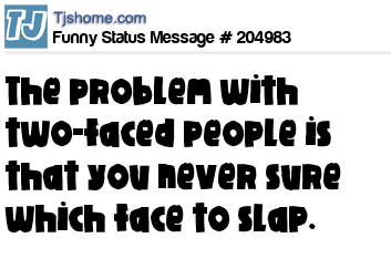 - # 203748 I hate two-faced people. It's so hard to decide which face to slap first.