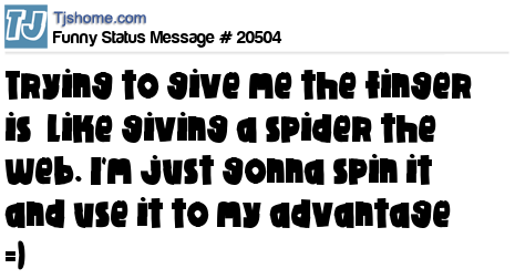 X is trying to give me the finger is like giving a spider the web. I'm just gonna spin it and use it to my advantage =)