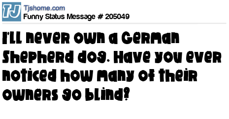 X says I'll never own a German Shepherd dog. Have you ever noticed how many of their owners go blind?