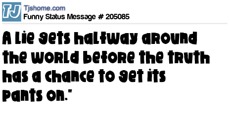 X says A lie gets halfway around the world before the truth has a chance to get its pants on."