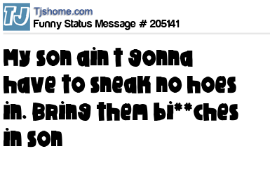- # 205138 My son ain’t gonna have to sneak no hoes in. Bring them bitches in son