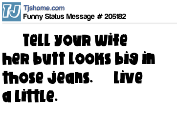 - # 207942 ell your wife her butt looks big in those jeans. Live a little.. Life is too short!