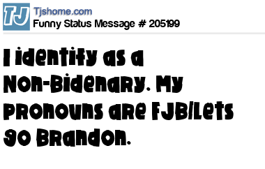 X says I identify as a Non-Bidenary. My pronouns are FJB/lets go Brandon.