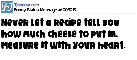 X says Never let a recipe tell you how much cheese to put in. Measure it with your heart.