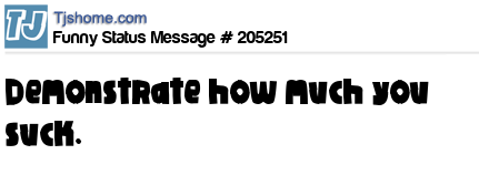 X says Demonstrate how much you suck.