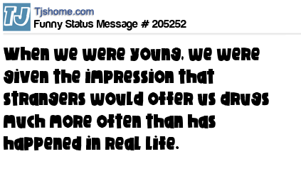 X says When we were young, we were given the impression that strangers would offer us drugs much more often than has happened in real life.
