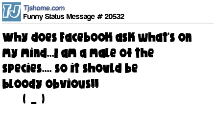 - # 22880 Why does Facebook ask what's on my mind...I am a male of the species so it should be bloody obvious!