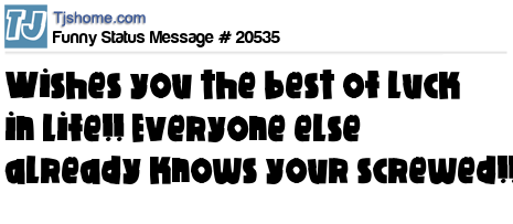 X is Wishes you the best of luck in life!! Everyone else already knows your screwed!!