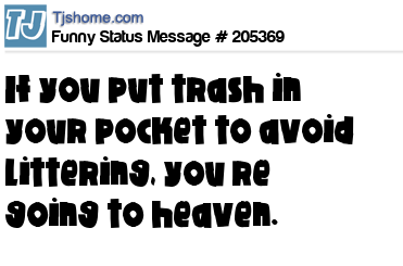 X says If you put trash in your pocket to avoid littering, you’re going to heaven.