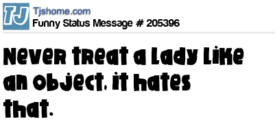 - # 207349 Men, do not treat your woman like an object! It doesn't like that.