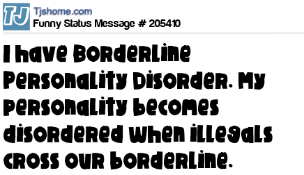 X says I have Borderline Personality Disorder. My personality becomes disordered when illegals cross our borderline.