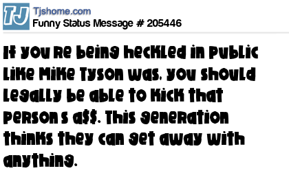 X says If you’re being heckled in public like Mike Tyson was, you should legally be able to kick that person’s a$$. This generation thinks they can get away with anything.