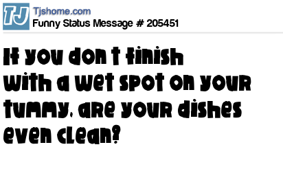 X says If you don’t finish with a wet spot on your tummy, are your dishes even clean?
