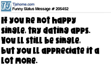 X says If you’re not happy single, try dating apps. You’ll still be single, but you’ll appreciate it a lot more.