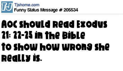 X is AOC should read Exodus 21: 22-25 in the Bible to show how wrong she really is.